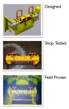 The key benefit of this design is the speed with which the units are developed and produced. The units are task specific and address the most demanding of Purchasers' requirements. The designs provide tailored functional performance and load transfer design. High strength offshore rated materials and fabrication specifications plus full FAT/SIT offers quality assured performance to ensure robust trouble-free offshore operations. For the example shown the solution was developed from enquiry to arrival in the main yard in 5 weeks and deployed and activated in a further 2 weeks in over 1000m water depth. |